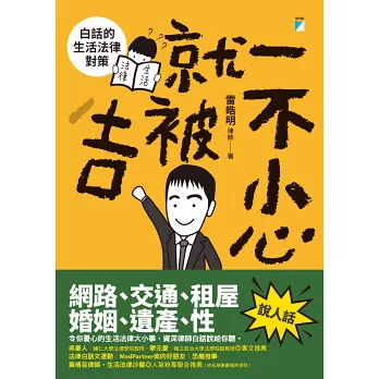 因此,資深律師精挑六大生活面向:網路、交通、租屋、婚姻、遺產和性,舉生活常見事為例,親切、精準,解析你我最關心的日常觸法擔憂和法律糾紛,並說明事件發生時,我們自己就可以做到的,最基本的簡單處理原則。