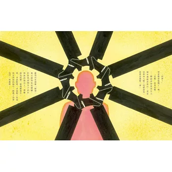 ☻《影子》繪本是由英國插畫家約翰‧雪萊精心繪製,風格魔幻的原創插圖,如實呈現「影子」與「我」天人交戰的角力場景。
