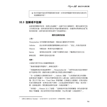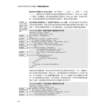 廣獲好評的程式設計實務指南,在過去十幾年間,由Steve McConnell所原創的《Code Complete》已幫助許許多多的開發者,開發出更完善的軟體。本書包含最新的更新與修訂內容,以及數百項全新的程式碼範例,充分闡明軟體建構的科學與藝術。McConnell匯集了來自學術研究與商業實務的各項知識,歸納出最有效的工作技巧、以及最關鍵的實踐原則,轉化成一系列清晰且務實的指引。無論你的知識水準、工作環境或專案規模如何,本書都能提昇你的智慧,幫助你建構出最佳品質的程式碼。