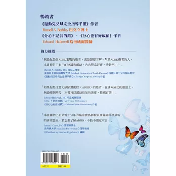 ※ 暢銷書《過動兒父母完全指導手冊》作者Russell A. Barkley 巴克立博士和《分心不是我的錯》作者Edward (Ned) Hallowell 哈洛威爾醫師 強力推薦 :