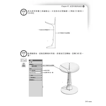 作者實際體認業界現況,除了設計或繪製造型為最基本需求能力,也必須在客戶端表現出產品的「可預期」樣貌,因此在各大主題中以繪製造型至彩現渲染為主要呈現,主要在符合客戶端的基本需求,讓使用者於整體設計與繪製上有具體的表現力及敘述力;而彩現渲染的表現運用到Photoshop、Illustrator及AutoCAD刻印等外部素材的插入與黏貼。於後段,在各主題中挑出幾個產品零件,並以3D Printer列印堆疊成型,使設計者可更加確定開發/設計的產品「可行性問題」的驗證與實體表達;設計產品從3D模型 → 彩現渲染 →3D列印實體 →末端或客戶驗證與修正 →大量生產(模具),這就是目前實際業界上的設計「實現」的流程,串接出整個設計者/繪圖者整體基本能力的架構藍圖。