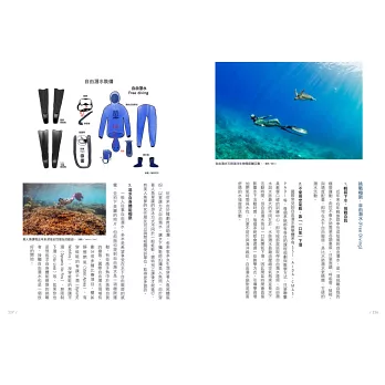 3. 如果你對於海洋有點陌生,本書特別為新手整理各種親近海洋的方式、管道與資訊,從浮潛、水肺到自由潛水,也可以結合帆船、室內潛水池等體驗,大膽踏出「下海」第一步。
