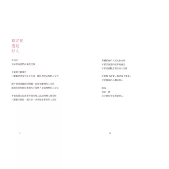 作者希望用這本書的文字,滲入各種人生關係之中。