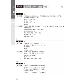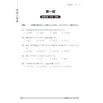 為了讓您有真實的應考體驗,本書收錄「超擬真模擬試題」,完全複製了整個新日檢的考試配分及題型。請您一口氣做完一回,不要做一半就做別的事。考試時要如臨考場:「審題要仔細,題意要弄清,遇到攔路虎,不妨繞道行;細中求速度,快中不忘穩;不要急著交頭卷,檢查要認真。」