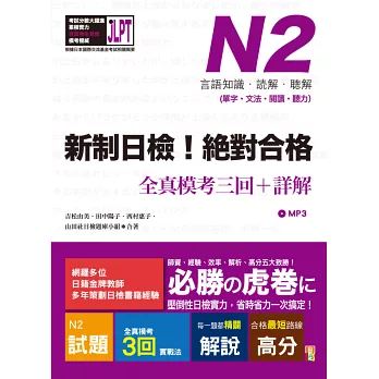 為掌握最新出題趨勢,本書的出題日本老師,通通在日本長年持續追蹤新日檢出題內容,徹底分析了歷年的新舊日檢考題,完美地剖析新日檢的出題心理。發現,日檢考題有逐漸變難的傾向,所以我們將新日檢模擬試題內容全面換新,製作了擬真度100﹪的模擬試題。讓考生迅速熟悉考試內容,完全掌握必考重點,贏得高分!