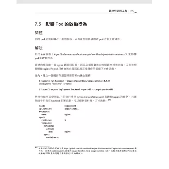 本書提供了許多詳盡的解決方案,從Kubernetes的安裝、Kubernetes的操作,以及如何在開發和正式環境中使用Kubernetes等等。各位會學到如何讓系統適應你的特定需求,並進一步熟悉它廣泛的周邊生態系統。每個章節的招式都是以問題──解法──探討這種歐萊禮為人所稱道的標準格式撰寫而成。
