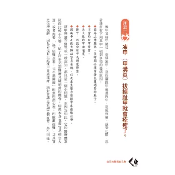 書中收錄近百幅圖解,詳細解釋關於腳的各種疑難雜症。除了腳痛的相關治療,更破除一般人對於腳部保健的迷思,讓你越走越健康。