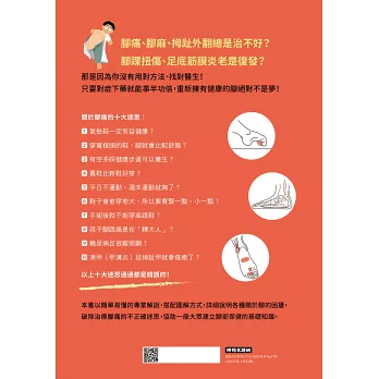 本書由台灣極少數專精足踝專科的醫師親自執筆,提供親身看診實際病例。如果有相關腳部問題,可以在其中找到參考建議,進而改善腳部困擾。
