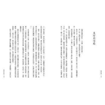 ★書中引用漢代至元明清的雋永詩句,詩本來就有很多對庶民心情直白的描摹,結合生活化的故事,將古典詩句的智慧運用到現代人的日常生活中。