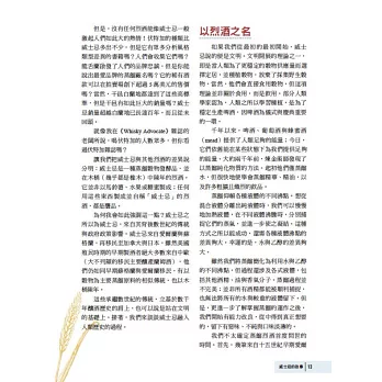 這是一本完整介紹威士忌的書籍,市面上類似的書籍不少,但是難得有以美國觀點論述的書!作者是美國著名威士忌雜誌《Whisky Advocate》的編輯,長期觀察威士忌產業的發展,也因此文中多有他在這威士忌大爆發時代的許多個人評論與紀錄,讀者在了解威士忌的過程中,也得以一窺這段時間在美國發生的故事!