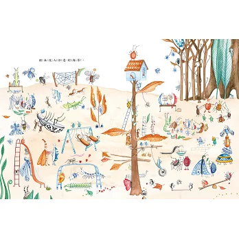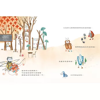 本書還有一個最大特色,便是作者在書中利用許多特殊的圖像設計,教導孩子們﹝數字﹞與﹝昆蟲﹞等認知概念,而色彩豐富的內頁,可刺激孩子的﹝感官﹞與﹝創造力﹞,藉由書中設計的「找找看」小遊戲,更可增進孩子的﹝觀察力﹞,書中還有許多有趣的細節,等待讀者們細細發掘,是一部溫暖人心、充滿趣味又有學習教育作用的繪本作品。