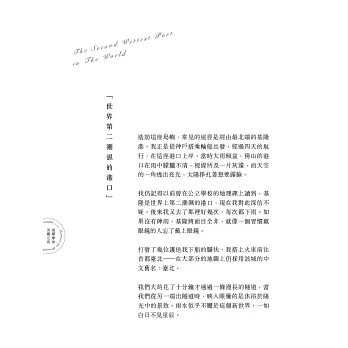 「如果你想確認這座島是否名副其實,最美好的方式之一是:在晴朗的日子裡,搭乘竹筏沿著福爾摩沙的西岸航行,你將親眼見證那在腦海縈繞數日的壯麗山景。肥沃的平原上布滿翠綠的稻田,如畫的小村莊散落四處,點綴著蜿蜒的溪流。越過平原,便可看見輪廓變化萬千的山丘,山頂林木茂盛,襯托著更遙遠、蒼綠的高山。在其中,有時能一次望見五座甚至六座並列的山脈,像是一條條色彩各異的絲帶,從最深的青玉色到最淺的天藍色,由北至南、連綿不絕的美景就在眼前開展。」