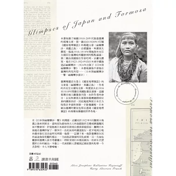 本書收錄了兩篇1910-20年代西方人旅遊臺灣的報導文章,記錄下一百年前臺灣的身影和面貌。第一篇文章中這段優美的文字,出自1920年3月號《國家地理雜誌》的報導文章〈福爾摩沙.美麗之島〉(Formosa the Beautiful),由愛麗絲.柯潔索夫撰寫,描述1916-1919年間她與外交官夫婿居住臺灣時所觀察到的點點滴滴。第二篇文章由美國旅行作家哈利.法蘭克撰寫,他在1923-1924年從日本到中國後造訪福爾摩沙,1924年出版了《日本與福爾摩沙一瞥》(Glimpses of Japan and Formosa),本書收錄後半部他在臺灣的所見所思:〈日本與福爾摩沙一瞥:福爾摩沙部分〉。