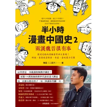 在二十一世紀這個速食知識時代,還想抱著大部頭歷史書查答案?來不及了!快來看《半小時漫畫中國史2:兩漢魏晉很有事》,讓你半小時內得到滿滿的正史知識!──廖彥博(歷史作家、譯者,《一本就懂中國史》作者)