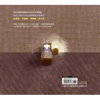 故事中的小羊,在貓頭鷹爺爺的指點下,小羊終於察覺自己最近都很晚睡,不吃蔬菜水果,也沒有運動……導致住在自己身體裡的自癒力醫生逃家了,小羊能順利找回他的逃家醫生嗎?