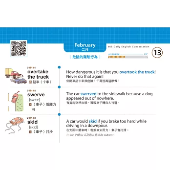 你有看過兼具學習和桌曆功能的英語會話書嗎?這本書沒有使用年限、隨翻隨學,讓你在閒暇時也能快速記會話!