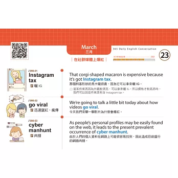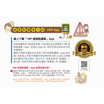 讀者只要將本書結合已安裝「虛擬點讀筆App」的手機,就能馬上利用手機隨時掃描書中的QR Code立即聽取本書的會話句,就像是使用「點讀筆」一樣方便,但卻不用再花錢另外購買「點讀書」。
