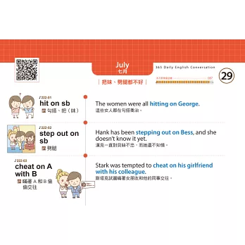 5.清新的排版,不僅方便閱讀,一次記一組,再搭配可愛插圖,更能提升記憶力,天天都能輕鬆地隨口說出外國人都在用的日常會話!