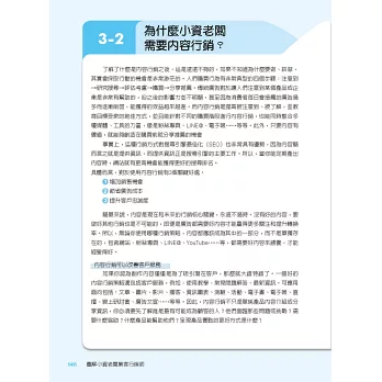 內容包含重點圖解、操作流程圖,讓讀者邊看邊做,進而培養實戰行銷技能,達成透過網路提升行銷效益和開發客戶之目標!最適合給小資老闆、行銷企劃、業務與soho族的必備工具書!
