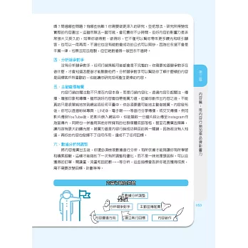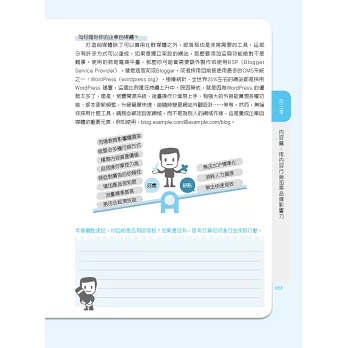 本書除了提供正確的觀念之外,其中部分章節也會包含圖解流程,讓你知道如何身體力行。在各章節中,都會有重點速記,可作為你學習歷程中的紀錄本,邊學邊計劃並且依照計畫而實踐所學,進而創造出實際的成果。