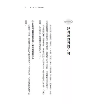 而唯有把思維聚焦到正確的方向上,貼近問題的真正本質,方能達到透過提問來掌握全局的目的。