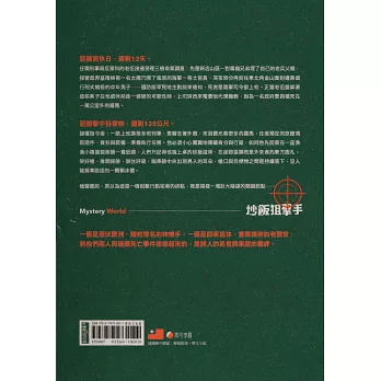 ◆ 國立老師的作品一向值得期待。從以前的小說乃至於旅遊札記的特色,就是故事說得超級生動活潑,讓人很容易進入狀況。這本《炒飯狙擊手》也不例外,讀者很難分清楚小說是作者杜撰的,還是現實中確有其事,因為太有既視感了!就是如此精采,既有異國風情下的暗殺與追擊、懸疑緊張的情節轉變、鉤心鬥角的爾虞我詐、無奈悲哀的往日同袍情懷、爭功諉過且出賣同事的黑心情節,再加上謎團的邏輯推演十分燒腦,是值得影視化的絕妙佳作,一本不可多得的本土推理小說。 ──前台灣推理作家協會理事長 杜鵑窩人