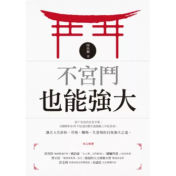 陳啟鵬老師的這本《不宮鬥也能強大》是一本可以輕鬆透過歷史官場故事,帶我們看透和駕馭「職場關係」的書,對各種職場難題都提出了有建設性、系統性的分析見解,包括:如何應對流言蜚語?如何統御下屬樹立權威?如何自薦爭取表現的舞台?如何……