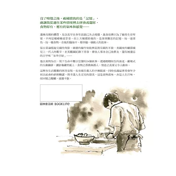 他以食物為引,寫下生命中難以忘懷的24個故事,透過栩栩如生的敘述、劇場式的生動鋪排,讓影像躍然紙上,食物之香撲鼻誘人,情意之真卻又令人動容。