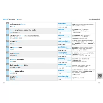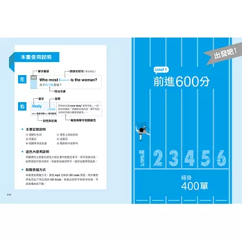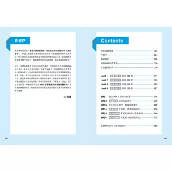 書中的1000個單詞進一步根據多益目標分成600分、730分、860分與990分,跟著本書逐步累積實力,多益黃金證書不再遙不可及。