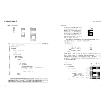 本講義除了介紹python 程式語法外,最重要是教你在遇到問題時該如何思考找出方法來解決問題,講義由第三章起都有許多範例以逐步引導利用「數學思維」來完成程式設計。所謂的「數學思維」即是在解題過程中,以間接或直接方式使用數學技巧、概念或知識來解決問題。許多程式問題表面上看不到數學式子,但並不表示用不到數學。數學善於偽裝,總是隱身於問題之中,若要完成程式設計,就得將隱藏在問題中的數學抓出來。初學者遇到程式問題若能隨時利用「數學思維」分析題目,學會如何分解題目,簡化條件來降低問題難度,如此就很容易「突然間」找到解決程式問題的切入點,之後逐步加入條件,即可完成原有的程式問題。學習成效即會大增, 學程式過程也就容易獲得成就感,寫程式就變得是一種另類的享受。