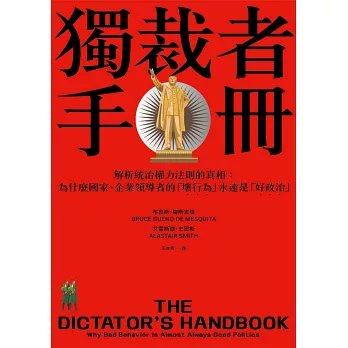 本書從這個基礎論點出發,大膽提出全新的單一架構理論,把我們所知的一切政治現實全部解構。那就是:國家沒有所謂的利益,人類才有。不管是非洲的獨裁國家還是亞洲的模範民主,領導者個人的利益與行動,永遠是驅動一切政治行為的力量。不管表面上提出再多「國家價值、社會利益、理念與願景」,背後的意圖永遠是延續自己的統治生涯。