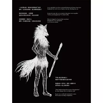 我一直帶著小孩子直觀的眼光來進行這本小黑黑的歷險,因此在文字的表達上力求能直率表達主人翁的心情,而繪畫自有文字無法言說明喻的特性,讓觀者有自己的詮釋與對映。