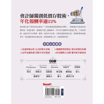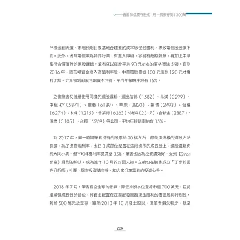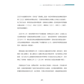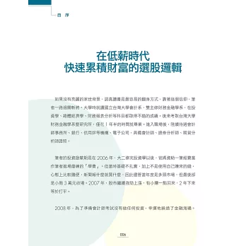 他除了在書中詳細解說自己的低價存股術以及持有的股票以外,也用大量的個股案例去分析、佐證,讓讀者看完此書後都能夠輕易上手,迅速累積財富。