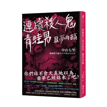 「逆轉的帝王」中山七里,將再次透過《連續殺人鬼青蛙男 噩夢再臨》,對整個國家社會投出一個必須持續思考、逐步嘗試去建構完善解答的難解課題。