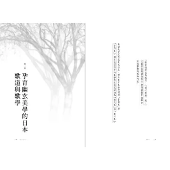 以物哀為首,日本美學史上陸續誕生了西洋美學不曾涉及的獨特概念。物哀探討剎那間的美與真實;幽玄引進陰翳,追求隱蔽下的真理;侘寂是在無一物中感受無限的終極美學思辯。揉合神道、老莊、佛教思想的日本美學,在物語、和歌、能劇、茶道等藝術形式中發展出豐富的美的意義與精神,啟發了今日無數的藝術創作。