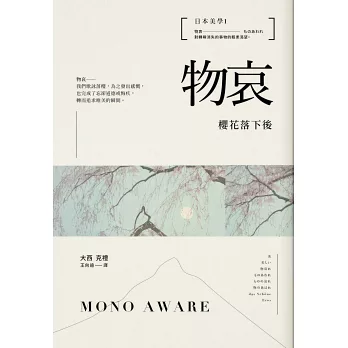 一千年的時間,日本的美學從唯美的物哀、深遠的幽玄,走向空無的侘寂。現代美學家大西克禮旁徵博引,將「物哀、幽玄、寂」定調為日本美學三大關鍵詞。本系列爬梳三大美學的起源、概念,及不同領域的解讀或應用,內容橫越文學、歷史、心理學、哲學,是讀者掌握日本美學的獨家著作。