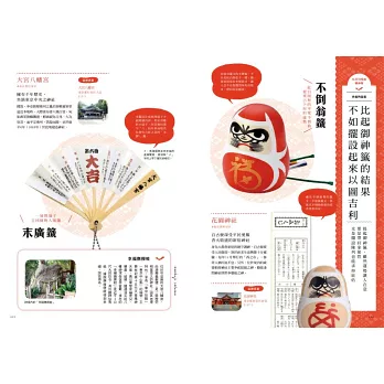 對於自古即熱衷占卜的日本人來說,透過神明或佛祖的口信,得知自己某時某刻的運勢這件事具有至高無上的吸引力。就算求籤的結果是「凶」籤,轉個念頭想,反正現在都已經跌至谷底,往後運勢一定會逐漸好轉。若能這樣想,心中也還能抱有一絲希望。