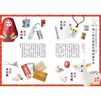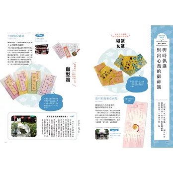 而且,近幾年還興起一種新型態的雅興──蒐集御神籤。以往,「凶」籤等運勢不佳的籤文多半是被繫在境內的樹枝上,以求避凶趨吉。不過,最近御神籤的設計用意愈來愈偏向讓參拜者將御神籤帶回家慎重保存,因此以讓人愛不釋手的動物──譬如與該寺院神社淵源深厚的兔子、鹿、馬、野豬、狐狸、鴿子等──作主題造型的御神籤數量遽增。於是,御神籤就不只是單純求神問卜的媒介,更具有當作蒐集對象的價值存在。往後,御神籤的發展勢必更加生趣盎然。