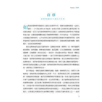 說起名留歷史的科學家們,往往只是教科書上死板板的名詞,但本書作者以最人性化的筆法描寫,每位科學巨擘的性格鮮明,躍然紙上,像是:小器又斤斤計較的牛頓怎麼成為科學巨人;量子的創始人普朗克卻被自己離經叛道的思想深深困擾,變得畏縮不前;一頭亂髮仍掩不住眼中堅決的愛因斯坦,如何力抗量子論的歷史洪流……