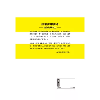 乍看是不可能的情景,但在特定情況下,你會怎麼解決這些問題呢?「思考實驗」在特定情況下用思考去思考,激發出問題解決力。本書包含80題名作與原創問題讓你挑戰,不局限於時空、拋棄固有的角度,運用想像力和推理力,一起學習全新的思考邏輯,成為職場勝利組吧!