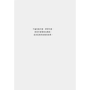「現代生活步調急速,充滿了許多令人分心的事物。如果你想要有效率地進步,別只是隨意翻翻這本書就算了,請拿起螢光筆畫重點,確實實踐。」――東尼.傑利(Tony Jeary),世界頂尖CEO和高成就人士教練