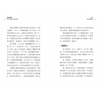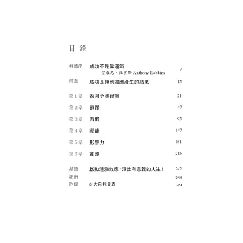 「愛因斯坦說:『複利是世界上第八大奇蹟。』你想要讓成功產生複利效應嗎?請抽空閱讀、了解並充分使用這本書教你的方法,它能幫助你實現你的夢想、希望和渴望。」――馬克.維特.韓森(Mark Victor Hansen),暢銷書《心靈雞湯》系列合著作者