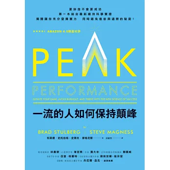 「這是一本引人入勝的好書,暢談如何維持顛峰表現及避免倦怠。史托伯格和麥格尼斯本身就曾經締造過驚人成就,長年與菁英共事。他們結合了豐富的經驗及致勝的新科學,在書中分享切實可行的見解。」――亞當.格蘭特(Adam Grant),紐約時報暢銷書《給予》和《反叛,改變世界的力量》作者