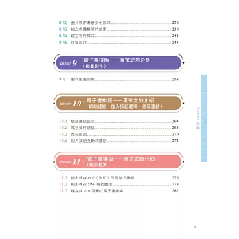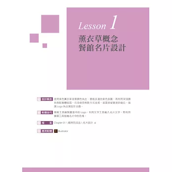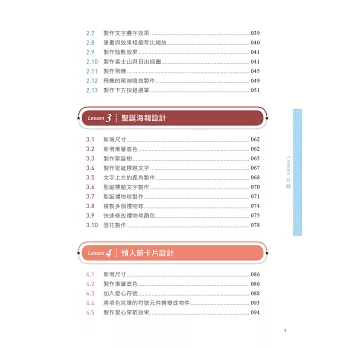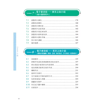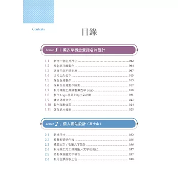 在專案範例中,除了一般較常見的Logo、海報、卡片、封面、等平面作品外,更進一步使用Indesign軟體,將上述設計素材結合,排版出屬於自己的電子書。內容步驟搭配圖說說明詳盡,照本宣科就可以將三大平面設計軟體一次學會!