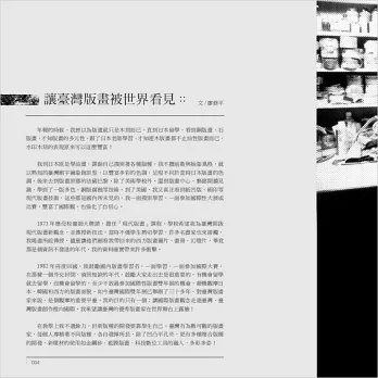 版畫是富有設計感及創造性的藝術,複數分享的特性更顯出其獨特的魅力。台灣版畫在廖修平引領之下,跳出傳統的窠臼,走入國際舞台,展現出耀眼的光芒。本書描繪廖修平等二十位代表性版畫家,擇其所愛、奮鬥不懈,並探索心靈、自我對話的歷程。他們的作品風貌多元,在版畫藝壇各領風騷,對於台灣藝術發展更是功不可沒。
