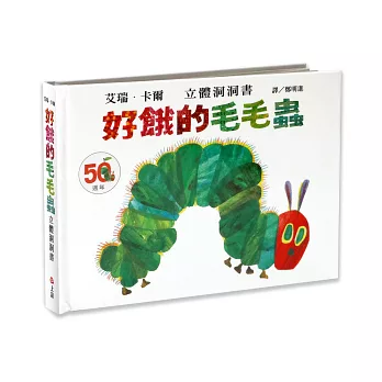 如今毛毛蟲已經50歲了,推出《好餓的毛毛蟲立體洞洞書:50週年紀念版》,拉開頁面可以看見太陽升起,毛毛蟲吃過的草莓、梨子、杯子蛋糕、棒棒糖全都立起來了,還有被當成小房子的「繭」也栩栩如生。請讓孩子的手指跟著毛毛蟲一起鑽進鑽出,和全世界的小書迷們一同進入艾瑞.卡爾的色彩世界裡。