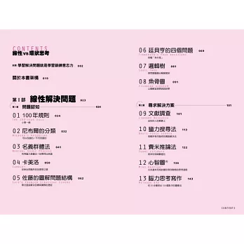 ◎線性VS環狀思考,14種問題認知+14種解方尋求+6種實行方案+3種結果推敲,古今中外研究家、科學家、詩人、哲學家、著名經典文獻彙集,依問題類型選擇思考方式。