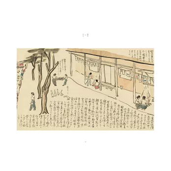 ◎以水墨淡彩和書法將臺中雙冬的風景人物、生活情景、日常器物一一入畫和敘述,引人入勝。