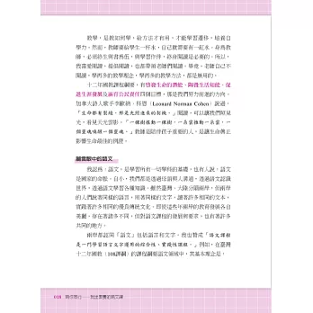 兩岸語文教師同中有異,異中有同,透過本書一次可以同時看見兩岸老師展現語文心法與教學。書中並分享11位教師的教案,透過29篇實作教案的分享,連結理論與教學,打造語文讀寫競爭力。