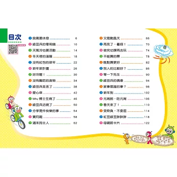 ★生活故事學成長:主角紅豆妮與綠豆兵引導小朋友學習身體保健、生活常規、課業學習、手足與同儕相處等,培養良好的品德。